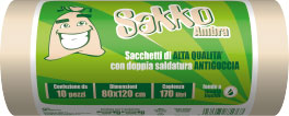 Sacchetti per pattumiera Specifiche Tecniche Dimensione 80x110 N. di sacchetti: 10 pz. Litri: 150 lt Peso: 700 gr Spessore: 42 my Rotoli per scatola: 14 pz. Dimensione 90x120 N. di sacchetti: 10 pz. Litri: 210 lt Peso: 800 gr Spessore: 40,3 my Rotoli per scatola: 14 pz. Scatola Specifiche Tecniche Dimensione 50x70 N. di sacchetti: 33 pz. Litri: 40 lt Peso: 700 gr Spessore: 32 my Rotoli per scatola: 16 pz. Dimensione 70x110 N. di sacchetti: 12 pz. Litri: 120 lt Peso: 700 gr Spessore: 40 my Rotoli per scatola: 16 pz. Dimensione 80x120 N. di sacchetti: 10 pz. Litri: 170 lt Peso: 750 gr Spessore: 41 my Rotoli per scatola: 14 pz. Dimensione 90x120 N. di sacchetti: 8 pz. Litri: 210 lt Peso: 700 gr Spessore: 44 my Rotoli per scatola: 16 pz. Dimensione 90x120 N. di sacchetti: 10 pz. Litri: 210 lt Peso: 1000 gr Spessore: 48 my Rotoli per scatola: 12 pz. Scatola Specifiche Tecniche Dimensione 55x65 Tipo di chiusura: Maniglie N. di sacchetti: 15 pz. Litri: 45 lt Peso: 240 gr Spessore: 23 my Rotoli per scatola: 35 pz. Scatola Specifiche Tecniche Dimensione 55x65 Profumazione: Fiori Tipo di chiusura: Maniglie N. di sacchetti: 15 pz. Litri: 45 lt Peso: 255 gr Spessore: 26 my Rotoli per scatola: 35 pz. Scatola Previous Baggy Next EasyBag